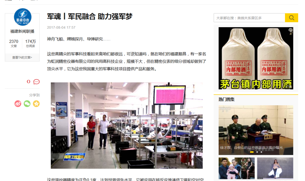 虹潤精密儀器:軍民融合 助力強軍夢——福建電視臺